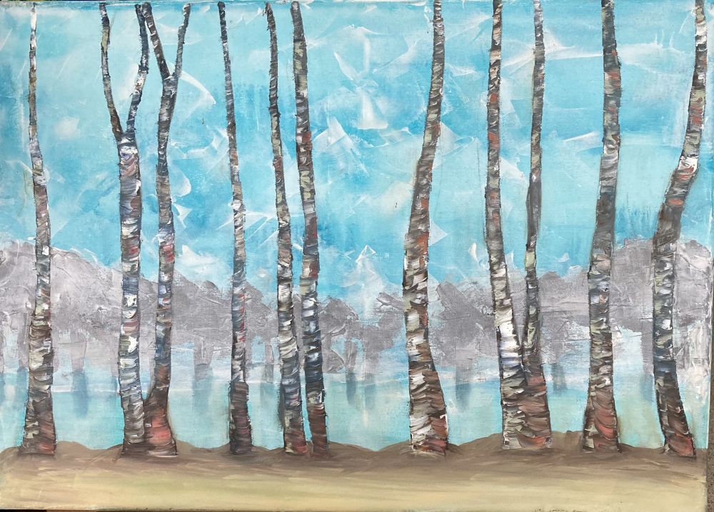 Er zijn 2 keuzes bij deze workshop: Het voorbeeld met kader wordt geschilderd op een canvasdoek 60 x 80. Het voorbeeld zonder kader op een canvasdoek van 50 x 70. Graag van te voren doorgeven welke u wilt gaan schilderen.